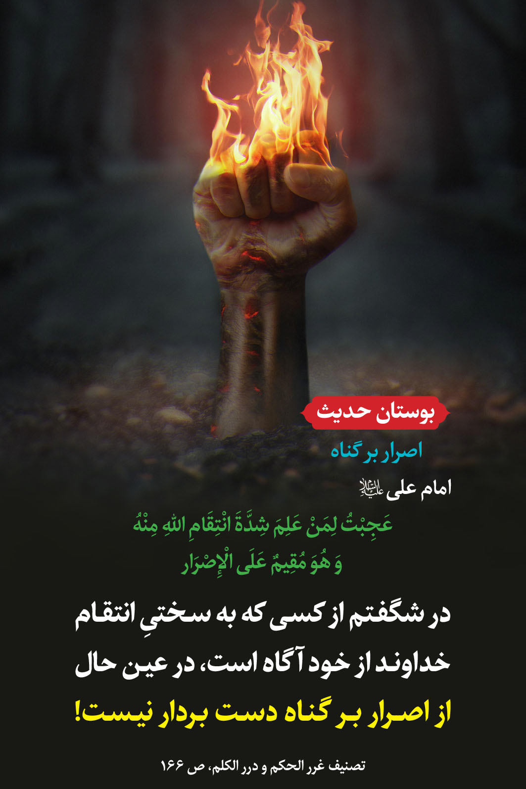 در شگفتم از کسی که به سختی انتقام خداوند از خود آگاه است، در عین حال